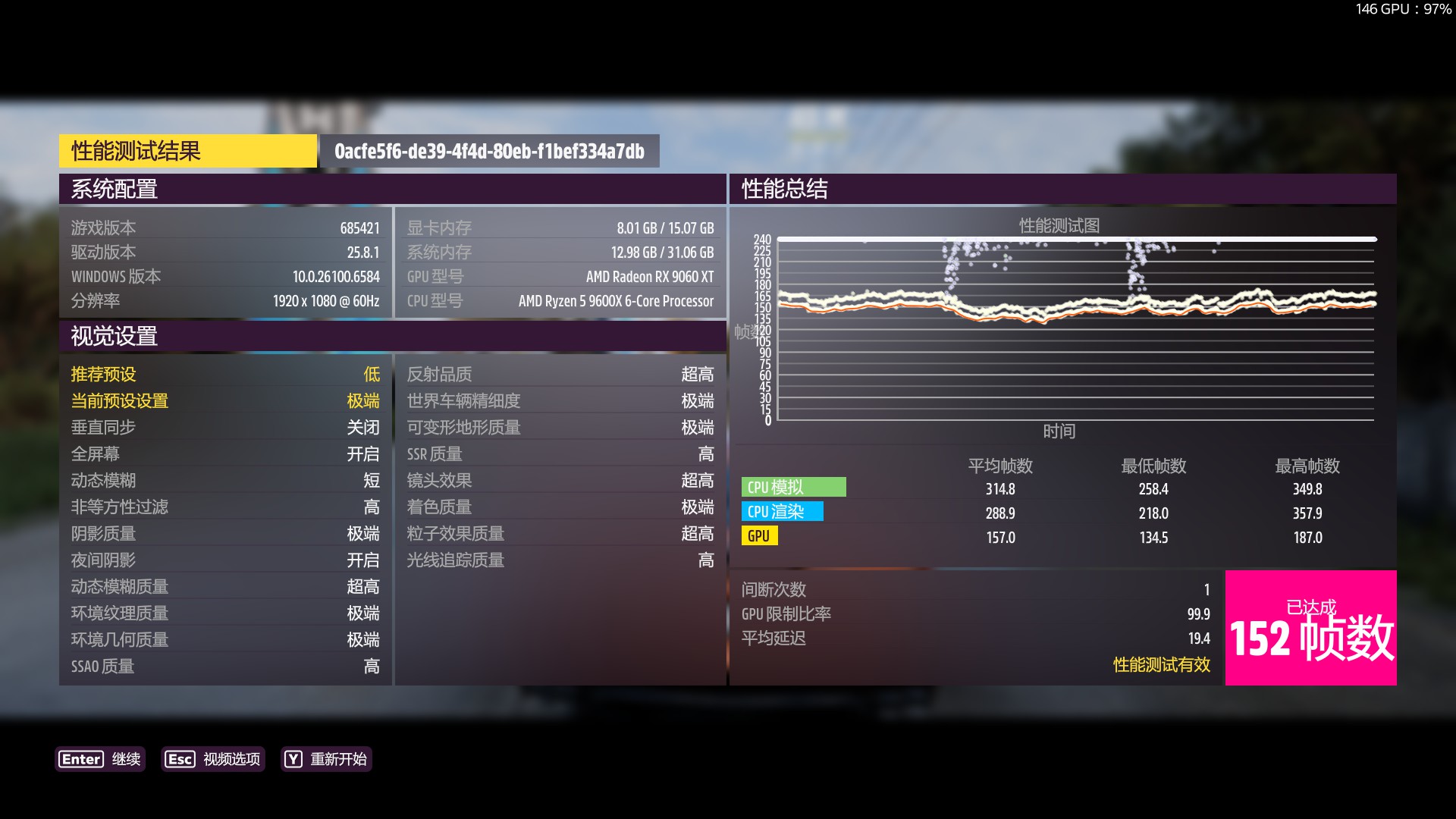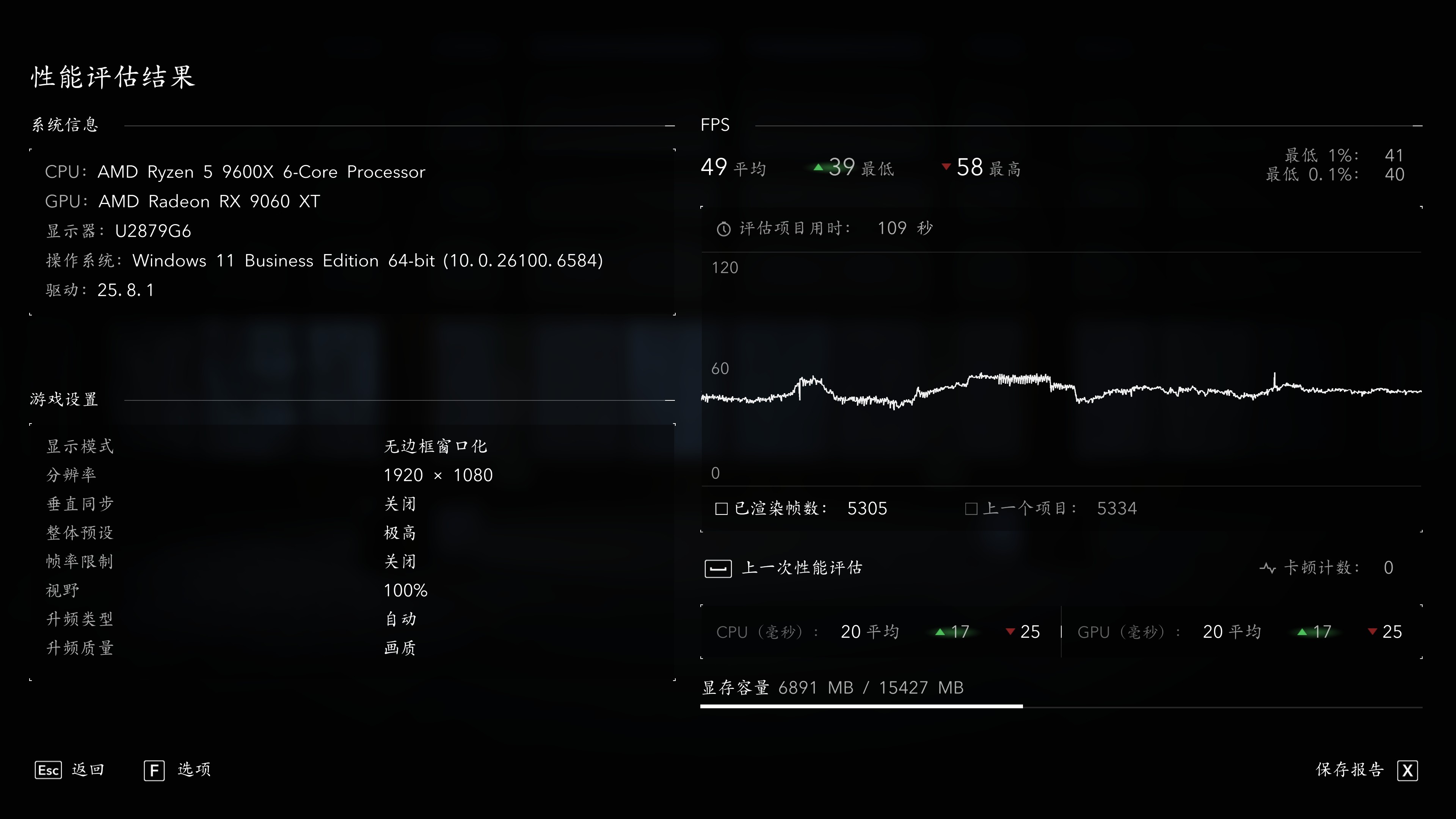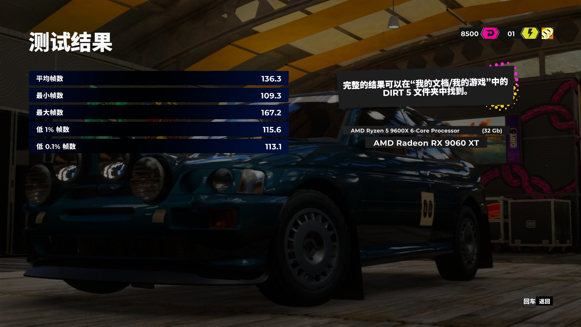 可以看到,两者在平均帧率上差距仅1.3FPS,几乎可以忽略;而低帧表现也基本持平,误差都在1FPS左右。这说明在更偏向GPU负载的赛车游戏中,内存频率的提升对整体帧率影响有限,但在极端情况下依然能带来轻微优化。