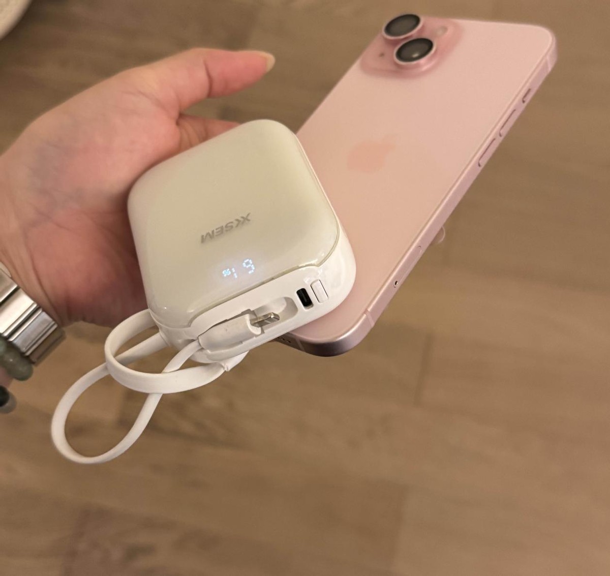 容量是 5000mAh,额定 3000mAh,虽然不算大,但日常出门应急够了,比如手机快没电了,临时充一会儿就能撑挺久。它能磁吸充电,15N 磁芯的吸力还可以,手机一贴就吸住,不用插线,用着方便。