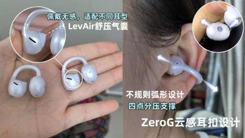 佩戴体验:采用轻量化设计,单耳重量约5.8g,上耳轻盈无负担,长时间佩戴也不会有明显压迫感。耳夹采用亲肤材质,贴合度高,日常活动、轻度运动都很稳定,不容易掉落。