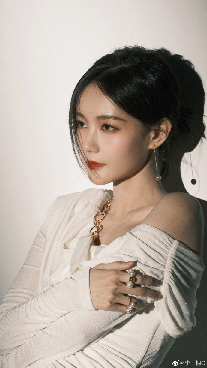李一桐一袭白色斜肩长裙,把 “清冷” 与 “柔美” 织成了独有的松弛感。裙身的褶皱肌理裹着纤瘦线条,斜肩设计漏出的肩颈衬着珍珠链条,冷调金属与柔润珍珠撞出恰到好处的贵气;高开叉裙摆随着姿态轻漾,露出的腿腕裹着白高跟鞋,每一处细节都踩着 “精致与随性” 的平衡点。