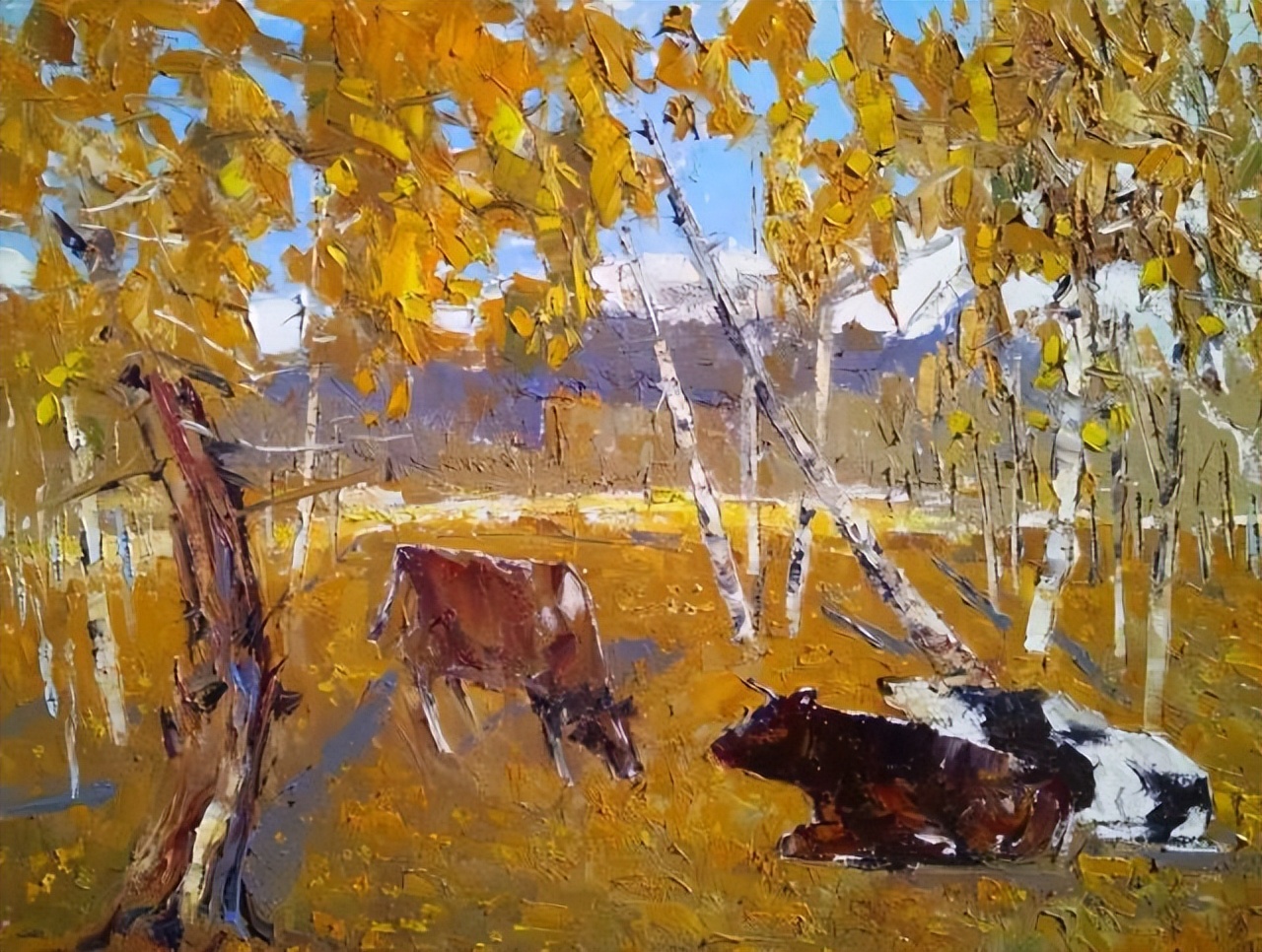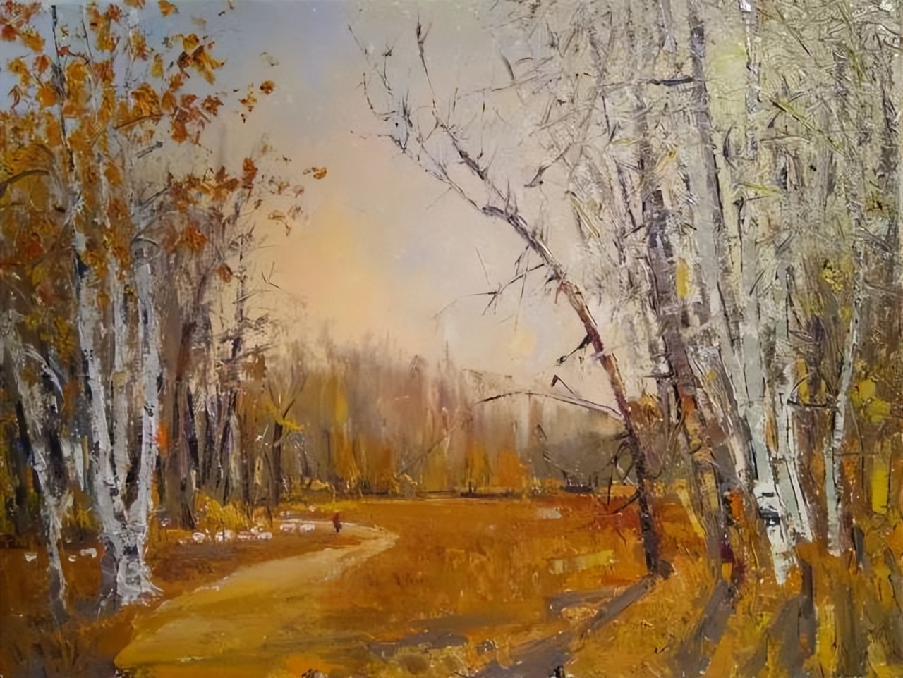 陈敏的“接地气”,还体现在他对“写生场域”的选择上。他的写生足迹不仅覆盖了国内的乡村与都市,更延伸至英国、日本、俄罗斯等国家的不同地域。在英国两个月的采风写生中,他不仅捕捉了异国的自然风光,更通过与当地藏家的交流,了解了不同文化背景下大众对艺术的认知;在日本东京的“和——当代中国小幅油画展”中,《白桦》的被收藏,既是国际市场对其艺术价值的认可,更是不同文化语境下,大众对“自然之美”“情感之真”的共同追求。这种跨地域的“艺术互动”,让陈敏的创作突破了文化边界,也让“接地气”的创作理念有了更广阔的内涵——它不仅是贴近本土生活,更是贴近人类共通的情感体验。