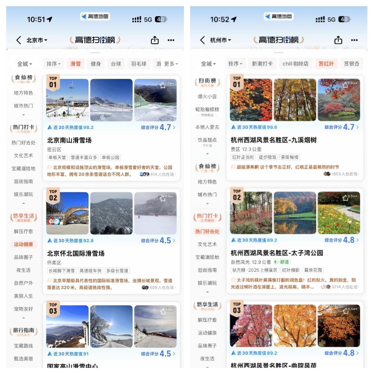 迄今,高德已生成了6553个时令榜单、1550个品类榜单。