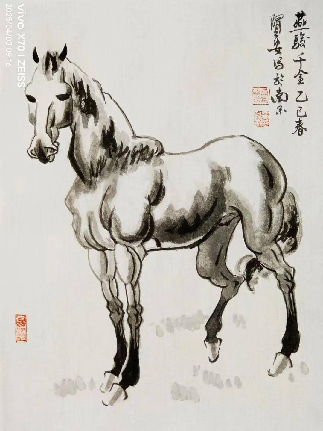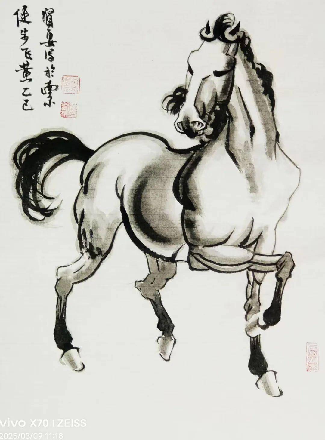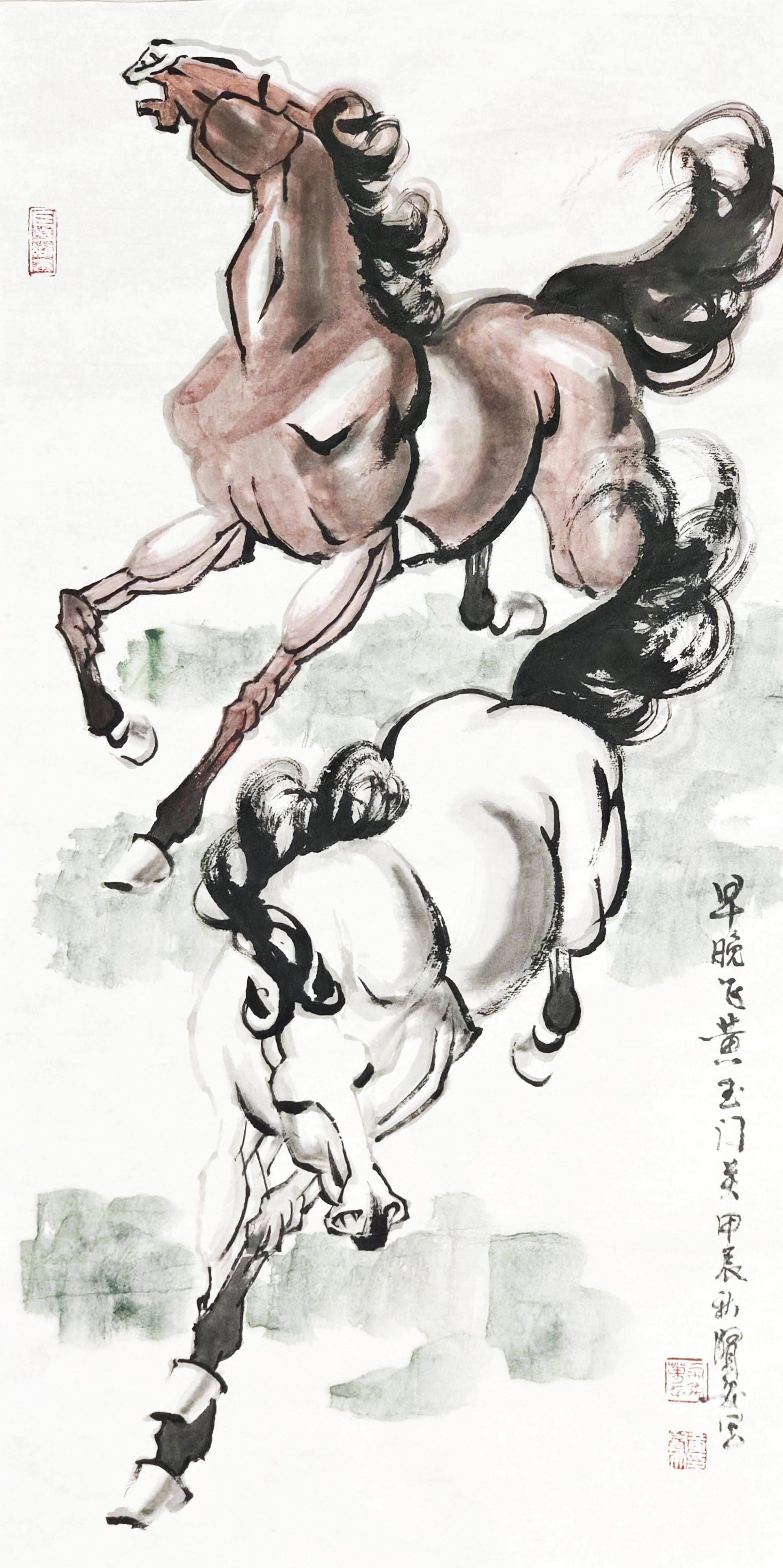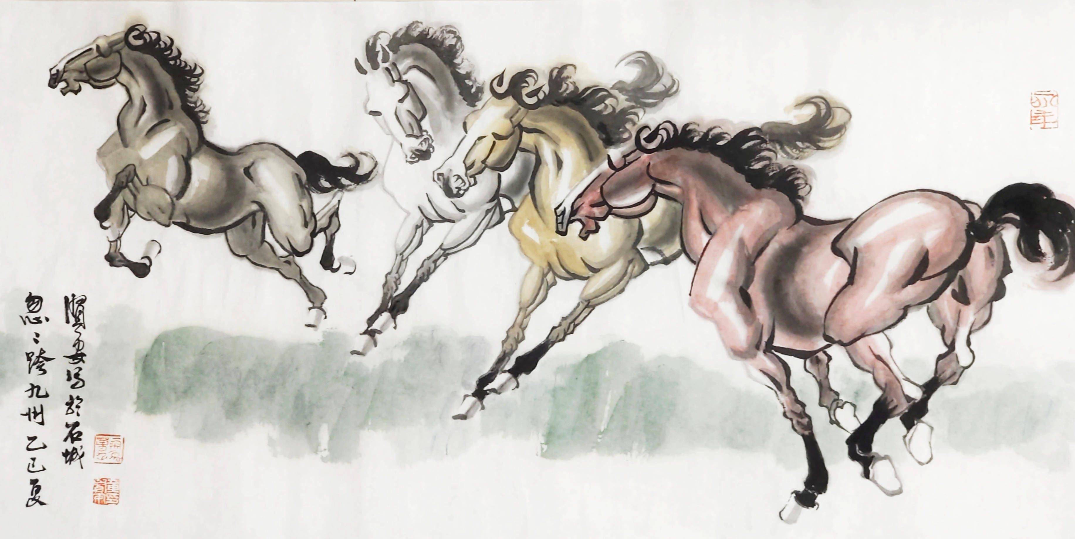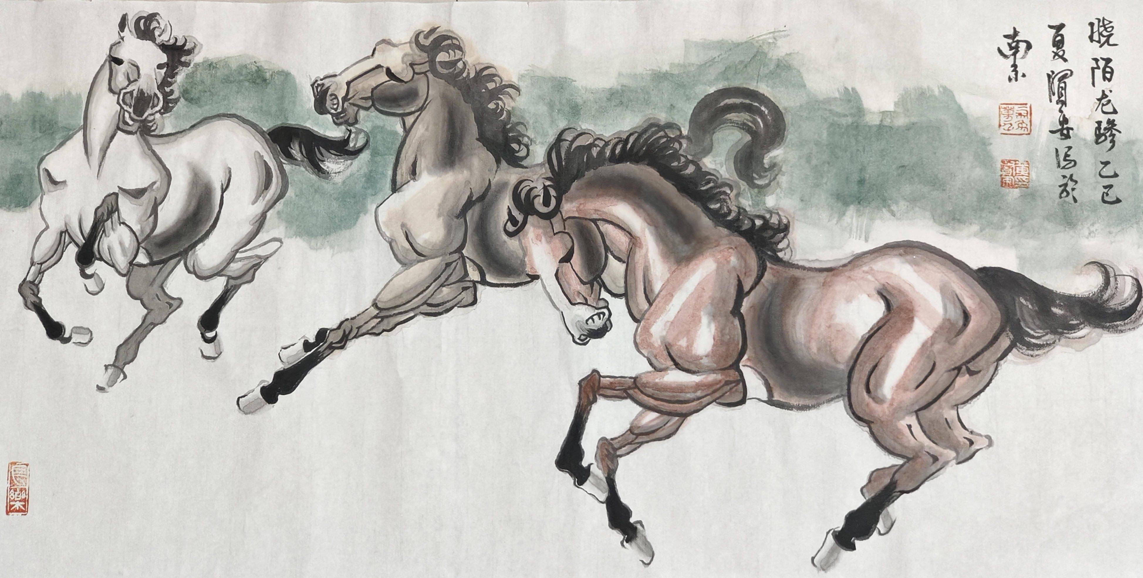 在中国画坛,马的形象始终承载着民族精神的图腾,从韩干的神骏到徐悲鸿的奔跃,历代名家以笔为剑,赋予骏马超越形体的精神内涵。当代实力派画家黄贤安融古今技法、汇中西所长,用酣畅笔墨勾勒出兼具力量与灵性的骏马形象,成为当代画马艺术的中坚力量。