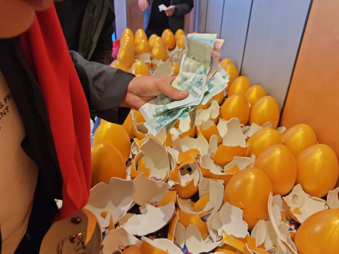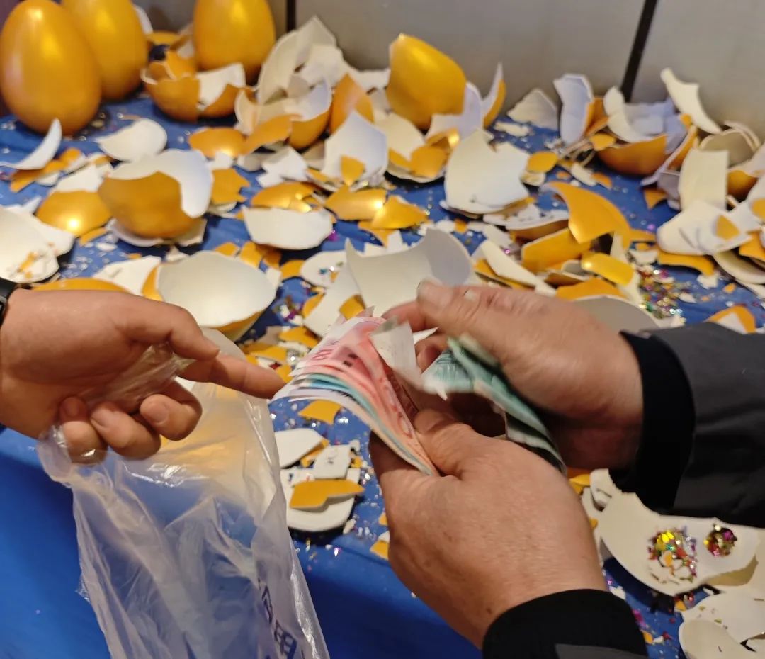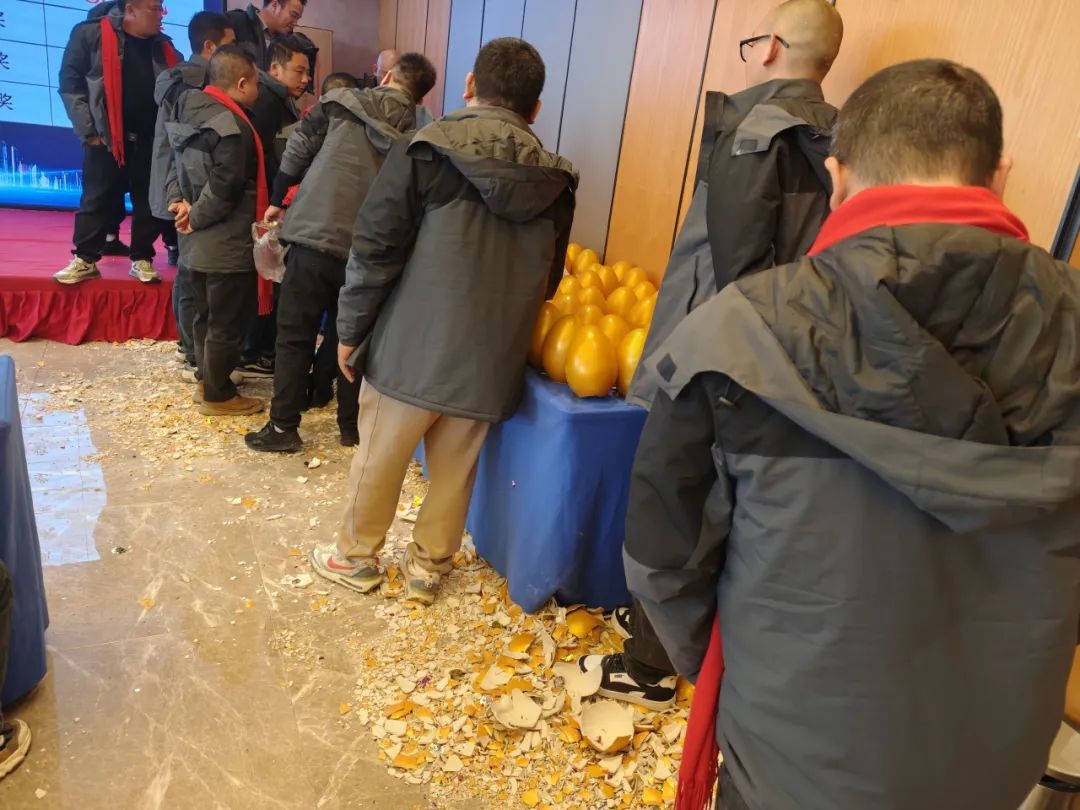 会议现场大家用实际行动表达了对快驴产品品质及操作模式的认同,一时间,敲击声、欢呼声交织在一起,800个金蛋提前全部砸完,满地的金蛋碎片见证了当日盛况,成为了答谢会上让人难忘的一幕,会后过百万的回款也充分彰显了合作伙伴的极大信任与支持。