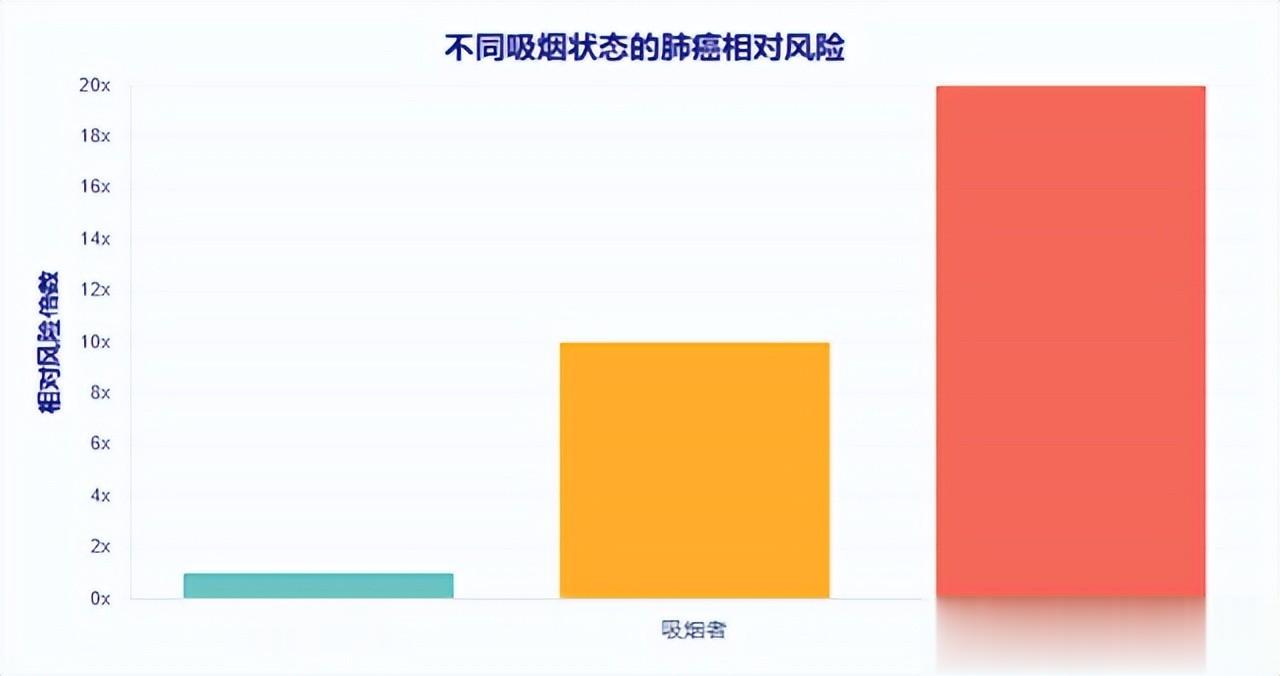 一项流行病学总结数据显示,吸烟可使肺癌的发生风险提高约10倍以上,有研究指出当每日吸烟量很大(如每天超过35支)时肺癌风险甚至可能进一步升高到20倍以上。而且在中国,约有超过80%–90%的男性肺癌病例与吸烟密切相关,这进一步说明了吸烟行为本身对肺癌负担的直接影响。