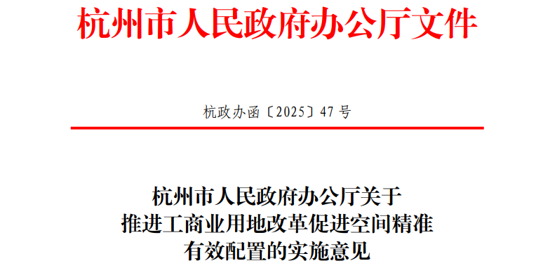 当不少城市还在为“产业要地没空间、商办楼宇空着闲”的矛盾犯愁——一边是人工智能、直播经济等新产业“抢地难”,一边是核心区商办楼宇空置率突破50%“晒太阳”,杭州率先交出了破局答卷。2025年10月,杭州市政府正式印发《关于推进工商业用地改革促进空间精准有效配置的实施意见》(下称《实施意见》,文末附《实施意见》全文),这份全国首个聚焦工商业用地精准配置的专项政策,将于今年12月1日起实施,不仅以16条创新举措重构土地配置逻辑,更直击“产业空间适配不足”与“存量资源浪费”两大核心痛点,为城市高质量发展提供了可复制的“杭州方案”。