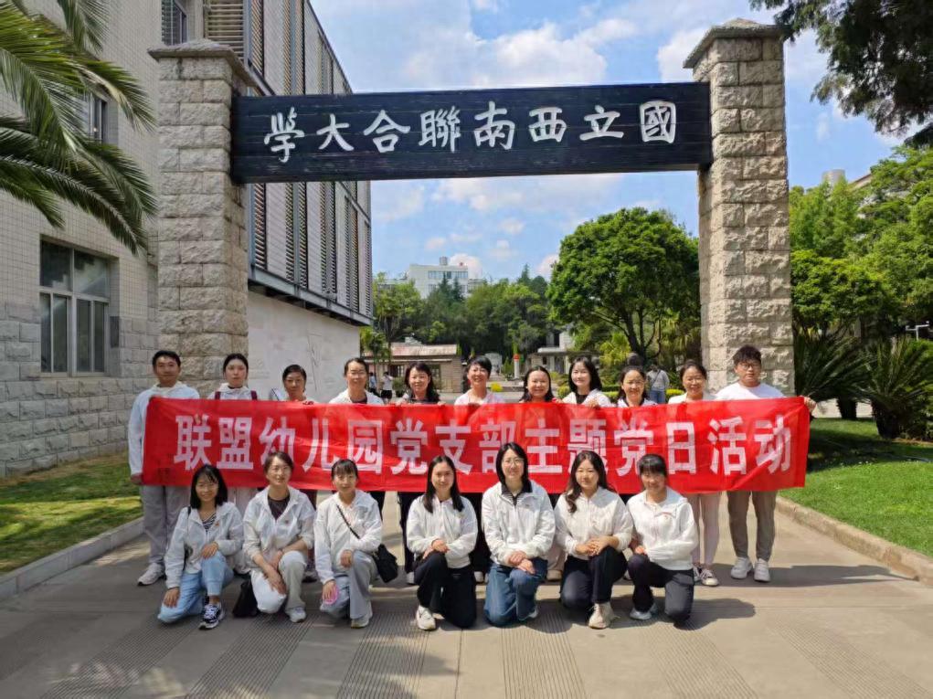 为引导广大党员教师树立正确政绩观、强化育人使命感,4月16日,昆明市盘龙区联盟幼儿园党员老师走进国立西南联合大学旧址,开展题为“联大精神照初心,立德树人正政绩”的4月主题党日活动,踏寻红色足迹、筑牢理想信念、赓续红色血脉,切实把联大精神转化为立德树人的实际行动,明晰新时代幼儿教育工作者的政绩内涵。