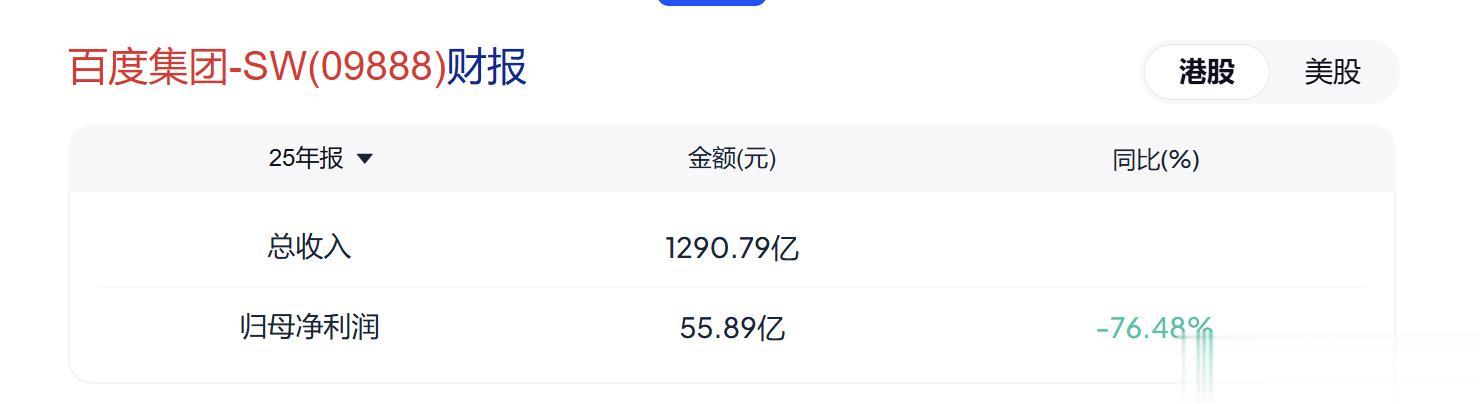 百度2025年最新业绩出炉,还原真实实力✅ 全年总营收1291亿元,仅微降3.04%,Q2-Q4核心非在线营销收入同比连增22%、28%、31%;归母净利润看似下滑77%,实则是162亿元一次性资产减值导致,剔除后扣非仅降29.86%,主营业务稳健。