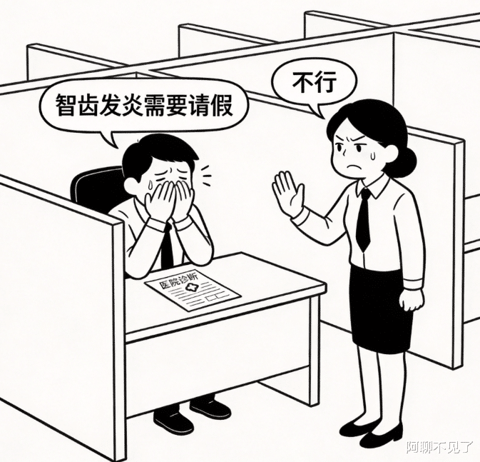 咱就是说,现在有些小公司的 HR,真把自己当老板的 “打手” 了,压榨员工一套一套的。我待的这家公司,规模不大,老板天天画大饼,HR 姐们儿就当 “饼托”,主打一个 “员工就得 24 小时为公司服务”。加班没加班费,美其名曰 “自愿奉献提升自己”;调休不让连休,说 “岗位离了谁都转不了”;最离谱的是请假,事假要提前一周层层审批,病假必须要三甲医院的全套证明,连我同事奶奶去世,请丧假都被 HR 念叨 “别耽误手上的活,尽量早点回来”。上周晨会,HR 更是把离谱发挥到了极致,站在台上对着全公司三十多号人说:“我发现最近请假的人越来越多,咱公司不提倡请假!年轻人出来上班,就要以工作为重,家里那点鸡毛蒜皮的事,能忍就忍,能推就推,总请假哪还有心思搞工作?”台下一片沉默,没人敢吭声 —— 小公司找工作不容易,谁都怕被 HR 记恨,回头穿小鞋、扣绩效,得不偿失。我坐在底下,摸着自己肿起来的半边脸,心里直冒火,我的智齿发炎三天了,疼得吃不下饭、睡不着觉,本来想着晨会结束就去请半天假,去牙科诊所处理一下,现在听她这话,心里咯噔一下。果然,晨会结束我找 HR 请假,她头都没抬,手指在键盘上敲得噼里啪啦,冷冷地说:“智齿发炎?多大点事,吃点消炎药忍忍就完了,别为这点小事耽误工作,咱公司不提倡请假,你这假我批不了。”我压着火气说:“姐,我半边脸都肿了,再忍下去可能要化脓,到时候请假更久,得不偿失。”