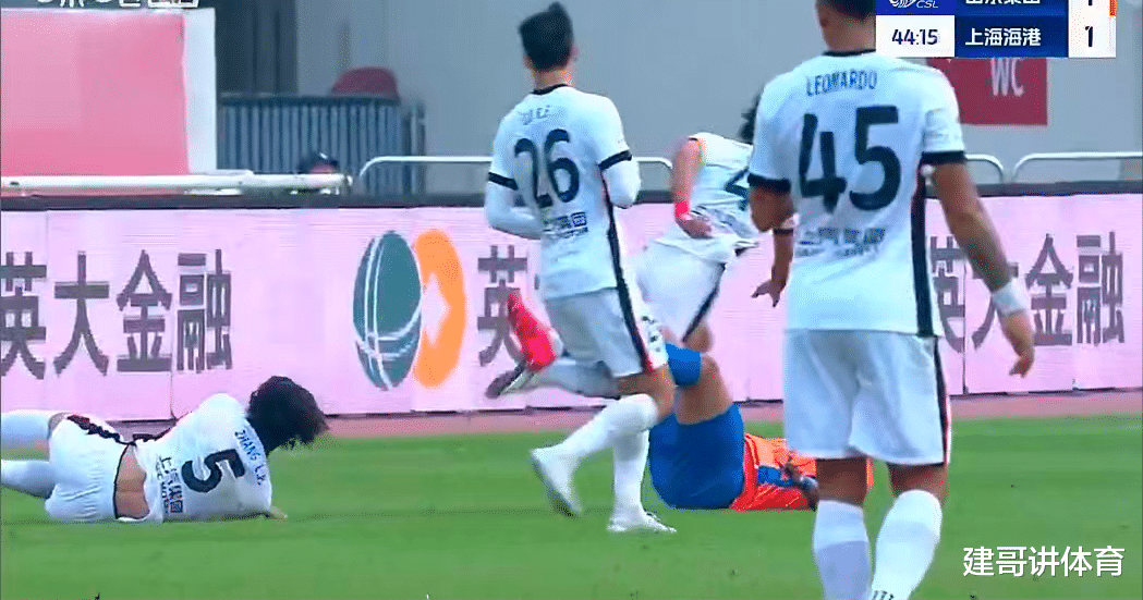 当转播镜头给了海港5号张琳芃特写时,看得出张琳芃对自己的发型在赛前还是专门进行了设计的,不过张琳芃这么好看的发型,却在上半场被泰山队外援前锋克雷桑给弄乱了,在上半场进行到尾声的时候,张琳芃夹击防守克雷桑的快攻时,没想到被克雷桑强壮的身体直接撞的倒地不起,随后疑似头部受伤的张琳芃,不得不放弃好看的发型,带伤了绷带继续进行比赛。