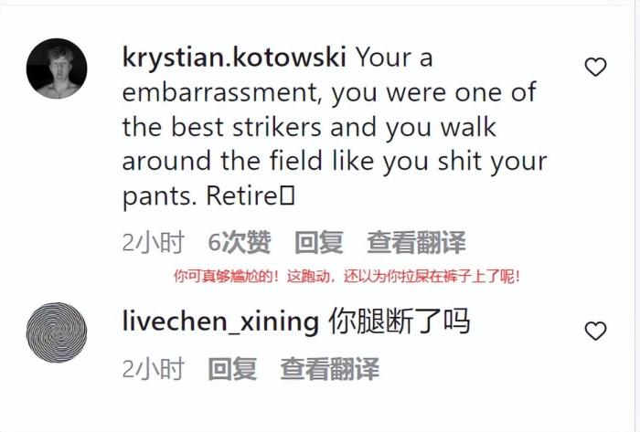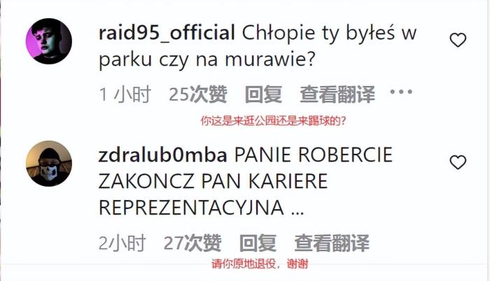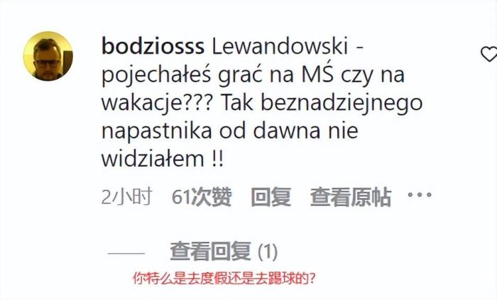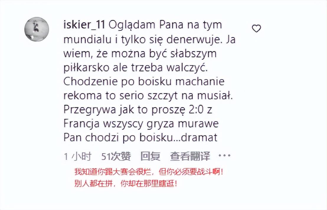 不过因为在1/8决赛面对法国队的糟糕表现,莱万的社交平台还是沦陷了。莱万成为了孙兴慜之后,又一位世界杯球队的当家球星遭网暴。有的球迷喊话让莱万滚出国家队,并吐槽他踢得像个第二级别球员。更多的球迷,是指责他在对阵法国队这一场比赛的态度,别的波兰球员都在拼,但他却在散步。