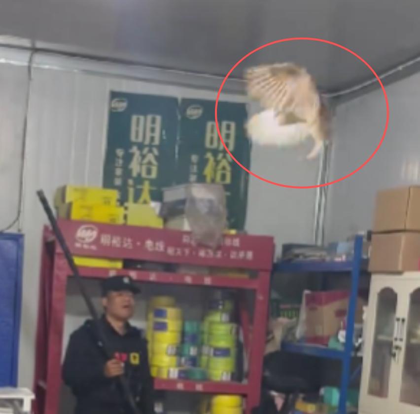当时赵先生正在整理店内的东西,突然一只长得像猫头鹰的鸟飞了进来,在屋里乱窜了几下,然后躲到了角落里。