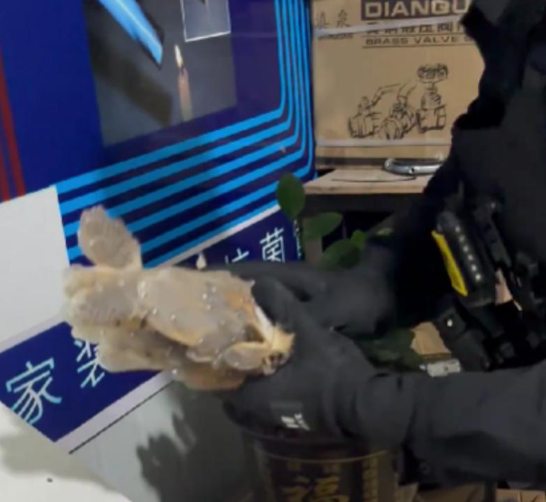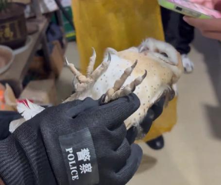 特警趁其不备,抓住了它的脚,然后把它拎了起来,这时赵先生才注意到,这只鸟的脚长得像鸡爪。