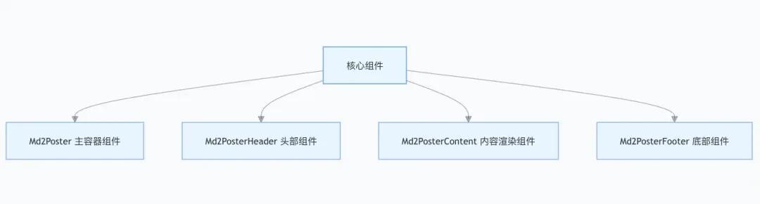 核心逻辑很简单:用户输入的 Markdown 文本,经react-markdown解析后,由Md2PosterContent组件渲染,再通过modern-screenshot将 DOM 转为图片;样式由 Tailwind 统一管理,确保跨平台一致性。