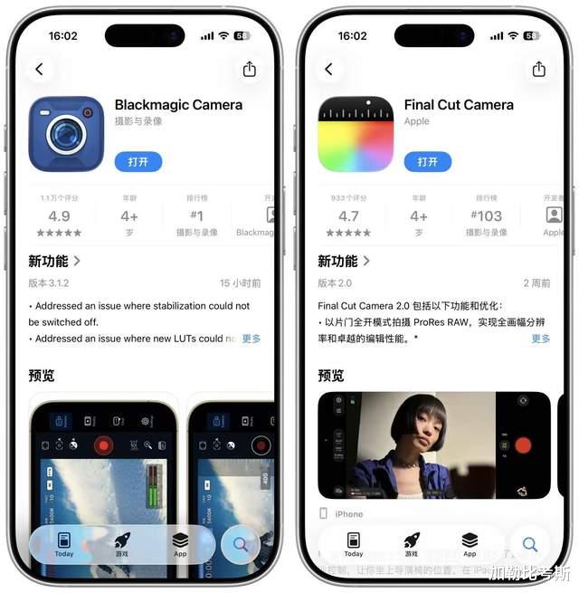 无论是哪个型号,都可以先下载2个应用:Blackmagic Cam和Final Cut Camera。这两个均支持ProRes或ProRes Raw视频格式拍摄。