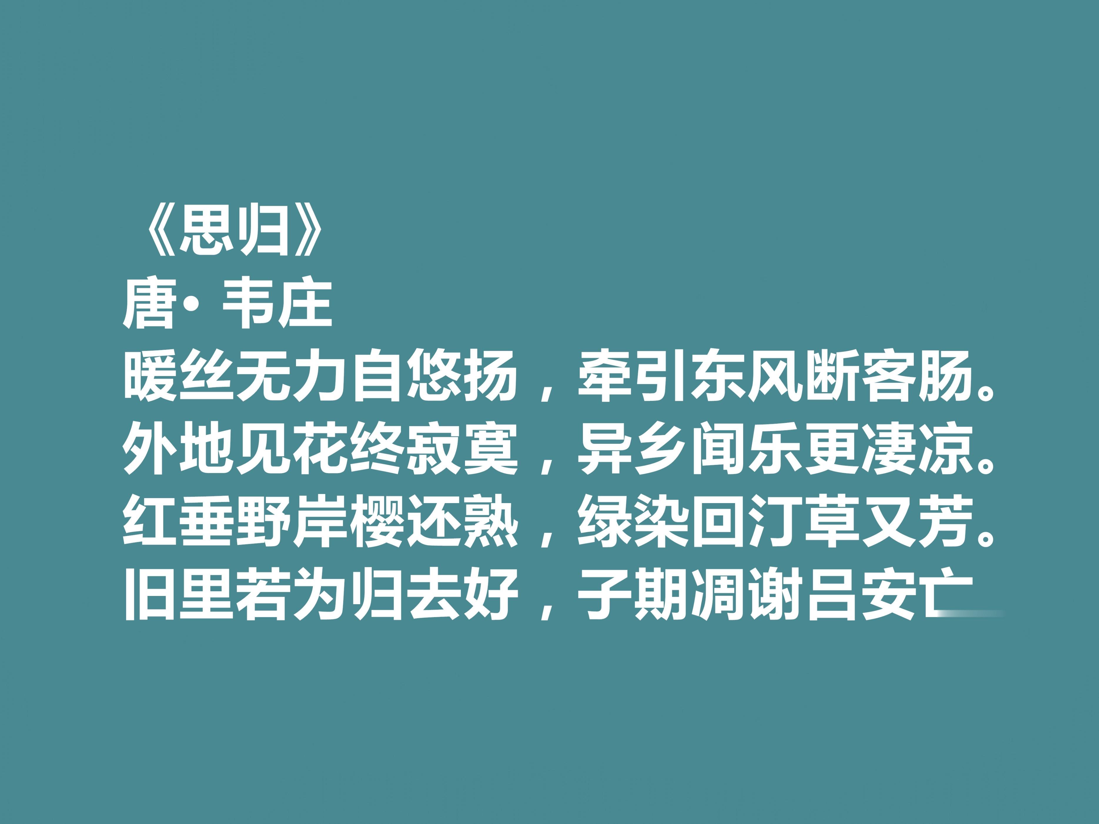 他的诗歌可分为三类:一是乱世纪实诗,以《秦妇吟》为代表,堪称“唐代战地报道”;二是怀乡羁旅诗,如“洛阳城里春光好,洛阳才子他乡老”道尽漂泊之苦;三是咏史怀古诗,《台城》中“无情最是台城柳”借景抒情,暗含对历史轮回的喟叹。韦庄以诗存史,以政安民,在唐末五代的黑暗岁月中,用笔墨与行动点亮了文明的微光。