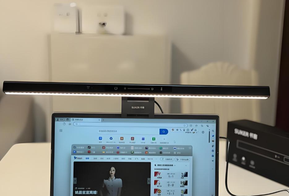 显示器屏幕灯什么牌子好?这款屏幕挂灯在色彩还原方面表现比较突出,显色指数达到Ra98,屏幕上的文字和图片颜色看起来更接近真实效果,对于修图、剪辑或设计这类对色彩要求较高的使用场景会更友好。照明结构采用前向的非对称投光方式,光线主要覆盖在桌面和键盘区域,对屏幕反光有一定改善,不过实际使用时光线质感偏刺眼,亮度较高时直视灯面会有些刺眼,长时间使用时舒适度表现相对一般。