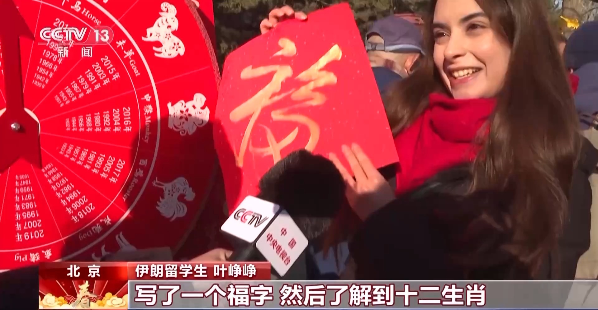 伊朗留学生 叶峥峥:我今天体验到了一些非遗活动,写了一个福字,了解到十二生肖,通过这样的活动来了解中国的文化,是非常有意义的。