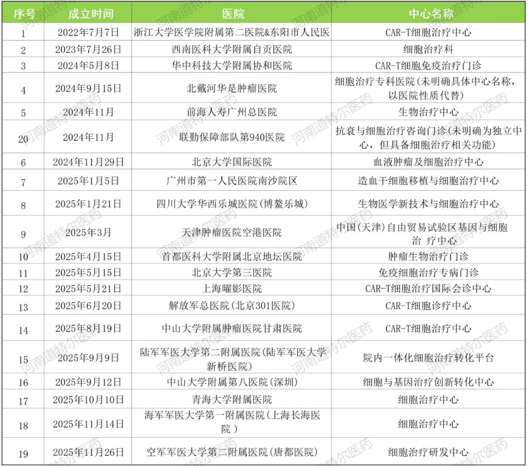 上海市长海医院、青海大学附属医院、北京大学第三医院……2025年下半年以来,全国已有近20家大型医院开设了细胞治疗中心。