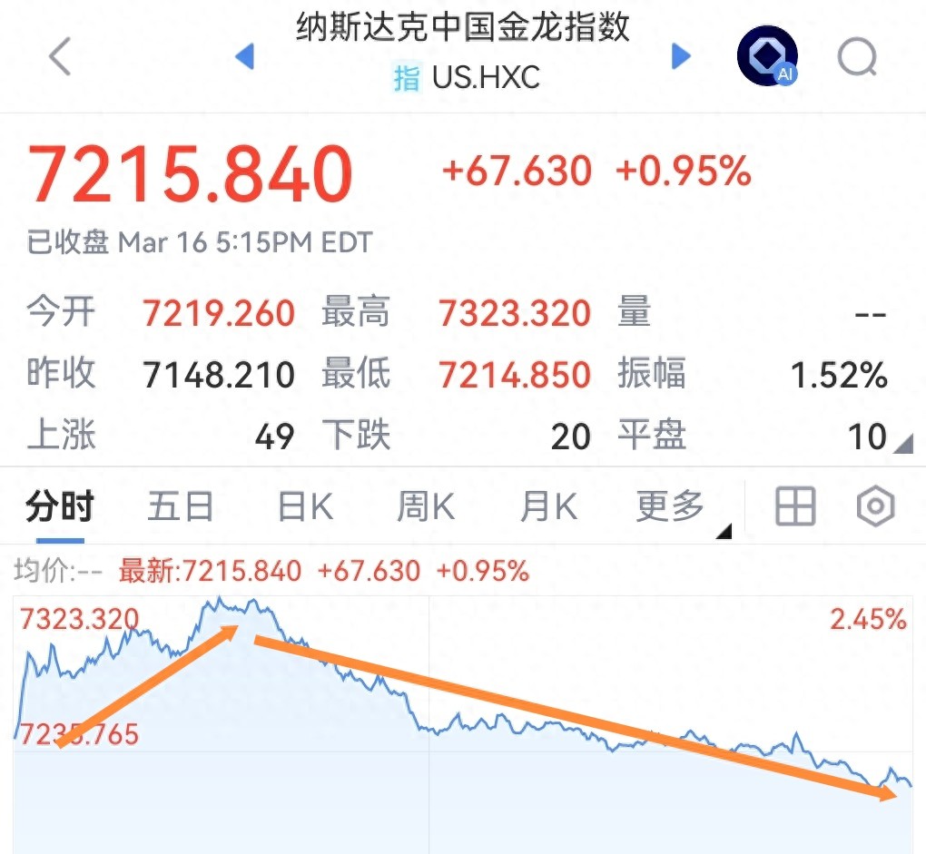 昨晚中概股涨幅冲高回落大半,恒生科技这一波反弹虽是一波三折,但上涨还会继续。