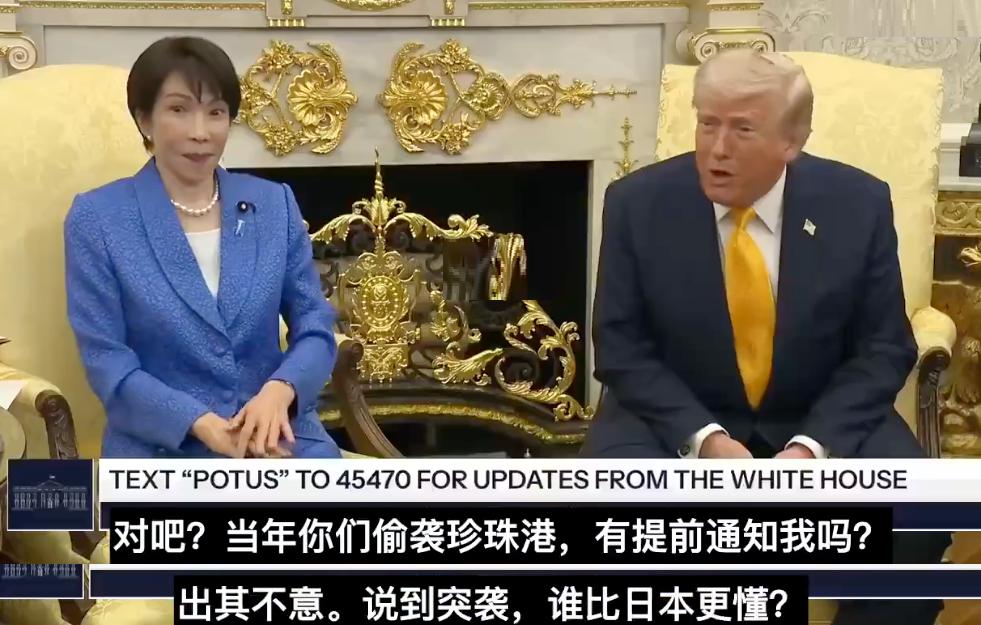 会谈现场最刺眼的一幕,不是投资数字,也不是礼节安排,而是特朗普当着媒体的面提起珍珠港旧事。这个动作的冲击力很大,不只是让高市难堪,也等于把美日关系里那层看似平等的外衣直接扯开。