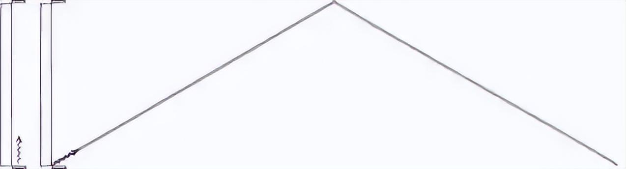 图:当地球上的人,带着一个光钟上了快速的飞船,对于地球上的观察者来说,光钟的路线由上下摆动,变成了斜线摆动。
