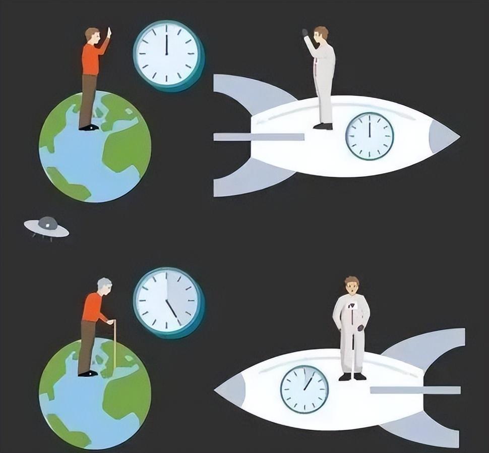 这就是爱因斯坦说的“时空”,时间和空间本位一体,是不可分割的。假设当你相对一个空间静止时,你的时间流逝是100%,突然你启动了,你在空间中产生运动时,你的时间运动就会减小,即时间流速变慢。对于环境来说,因为环境相对于你在进行空间上的运动,所以时间上的运动就慢了。然而这一切是对于有质量的环境或者飞船来说的!
