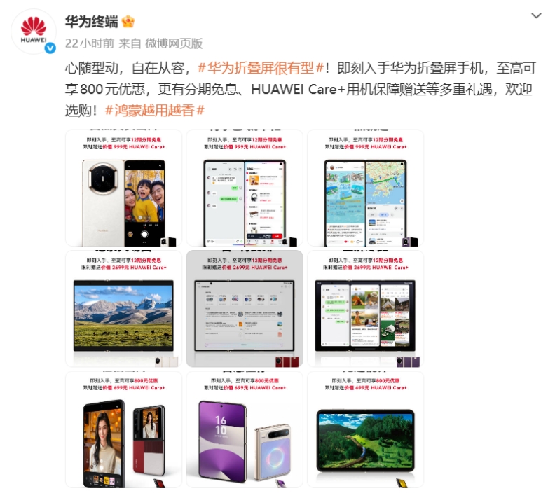2026年,国内手机市场迎来集体涨价潮——旧机涨价,新机更贵,让不少原本有换机计划的消费者打起了退堂鼓。然而就在3月27日,华为终端逆势推出一波诚意满满的优惠权益,覆盖华为Mate X7、Mate XTs 非凡大师、Pura X等多款折叠屏产品。具体权益包括:赠送一年期HUAWEI Care+、最高12期分期免息、2年四次免费贴膜等专属服务;华为Pura X更有至高800元优惠。在行业普遍涨价的浪潮下,华为折叠屏,显得更具性价比。另外,购买鸿蒙折叠电脑也可享最高1500元优惠及12期分期免息(4月30日前线上官方渠道购买)。