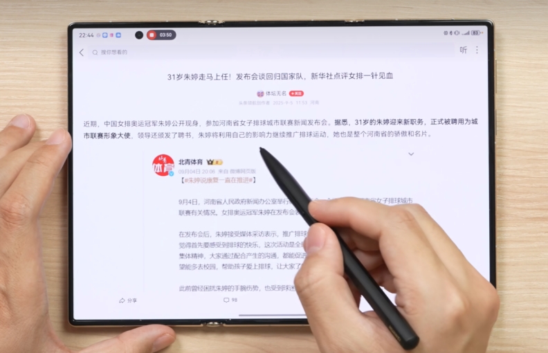 华为Mate XTs 非凡大师是一款三折叠旗舰,主打极致大屏与PC级生产力体验。展开后带来的10.2英寸超大视野,无论是看电影还是浏览家庭相册,都能获得极具沉浸感的视觉体验;通过运行PC级Wind金融终端,热门股票与行情走势一目了然;万兴脑图能在三折叠大屏上清晰呈现复杂逻辑脉络,商务场合尽显专业与高效。值得一提的是,华为Mate XTs 非凡大师可搭配华为M-Pen 3手写笔,支持批注、摘录、息屏速记等丰富功能,成为内容创作与商务办公的得力助手。