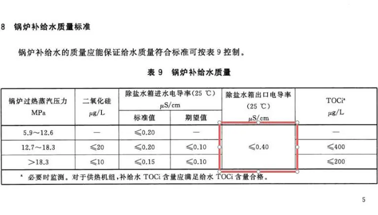 ★《GB/T 12145-2016》:明确提出除盐水箱出口电导率≤0.40 μS/cm。
