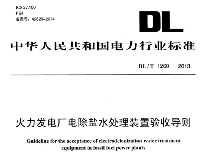 ★《DL/T 1260-2013 火力发电厂电除盐水处理装置验收导则》:要求EDI装置出水质量应达到合同要求,并满足国家锅炉补给水标准。