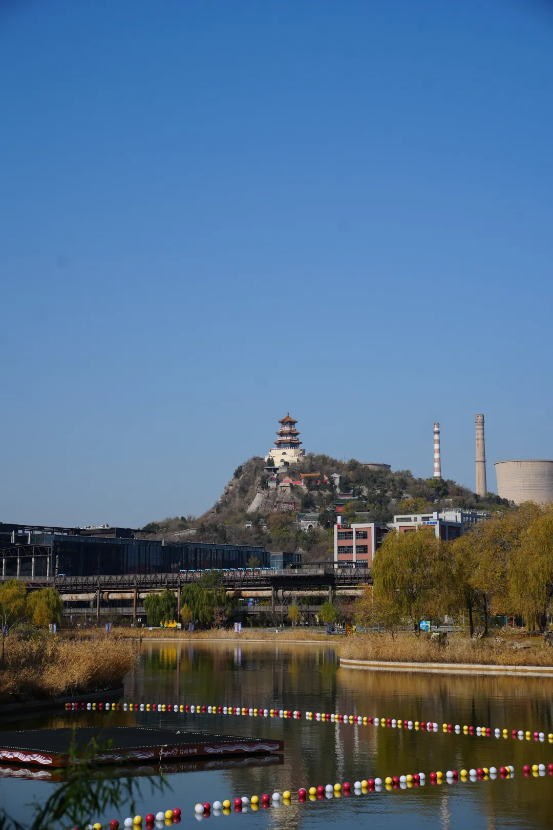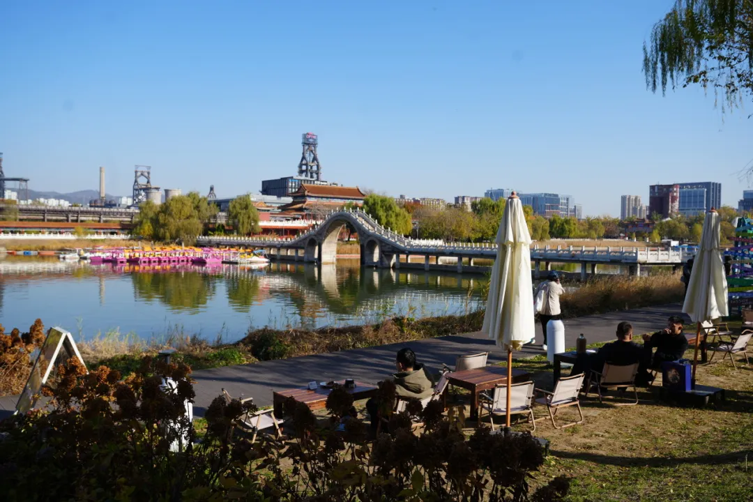 在首钢园群明湖畔