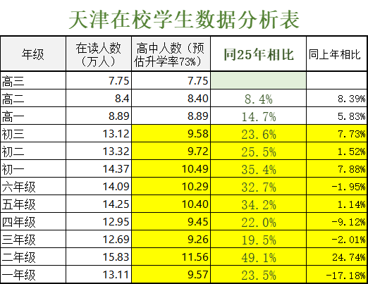 从学校视角:高中教育资源的扩容压力陡增。目前天津普通高中数量约百所,要承接未来每年超 10 万的新生,要么新建学校、要么扩大班额,教育部门的 “扩容答卷” 将直接影响升学质量。