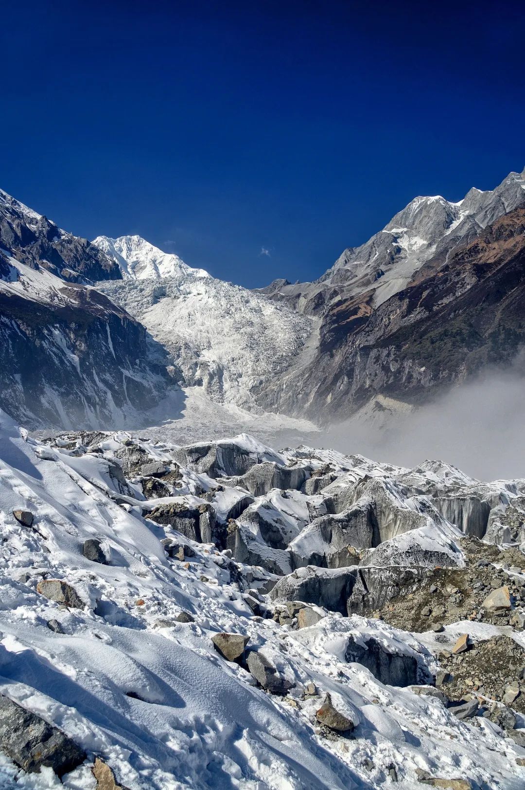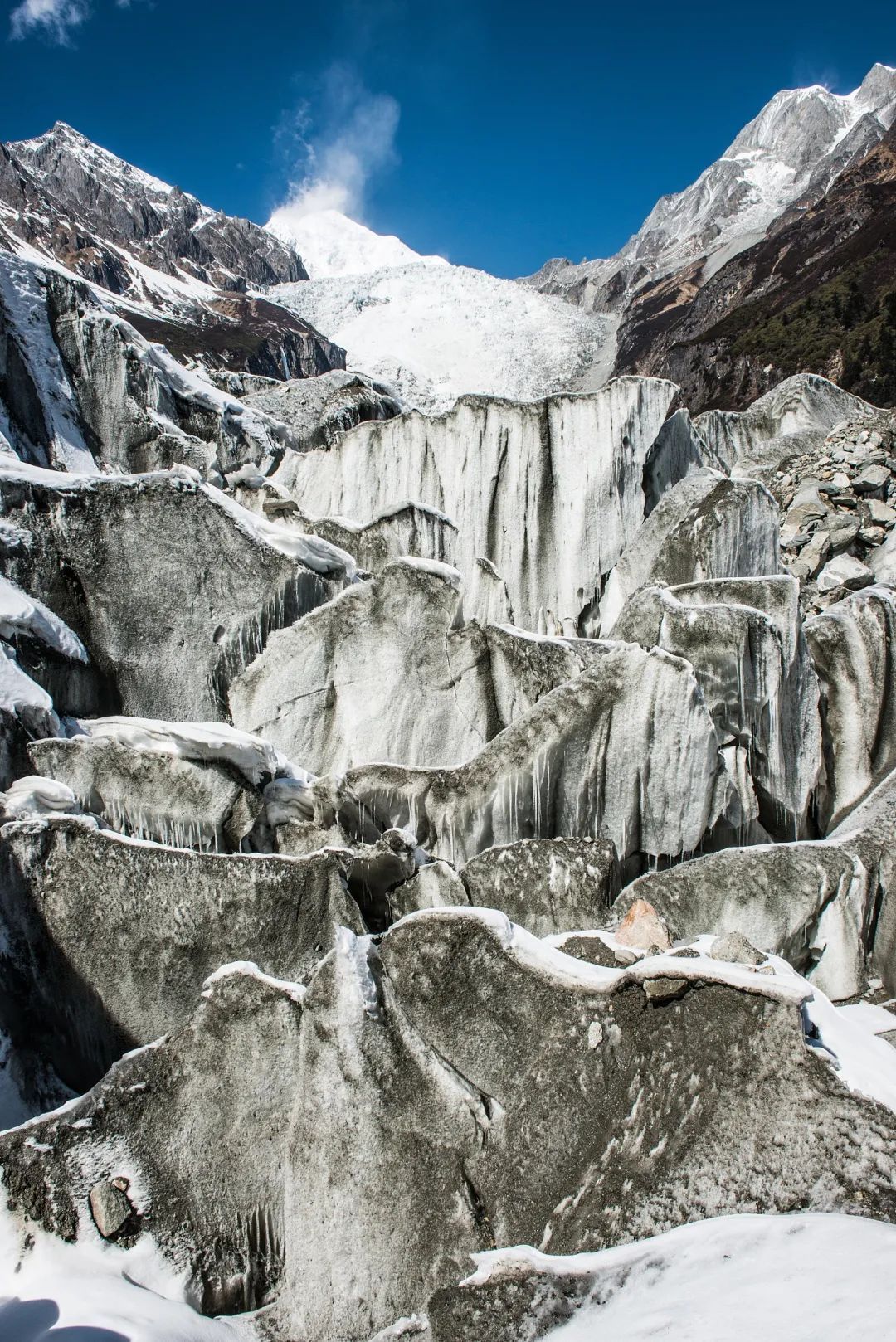 贡嘎神山巍然屹立于青藏高原东缘,这位“蜀山之王”的极高山,是分隔景观与人文的天然地标,海螺沟无疑是贡嘎的“长子”。