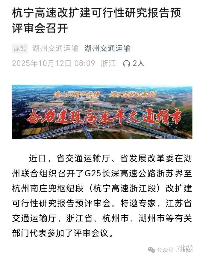 近日,省交通运输厅、省发展改革委在湖州联合组织召开了G25长深高速公路浙苏界至杭州南庄兜枢纽段(杭宁高速浙江段)改扩建可行性研究报告预评审会。