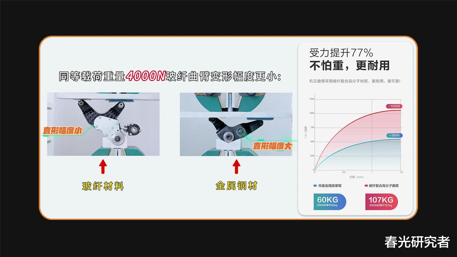 然后额外多说一句,看到网上有人说荣泰的机芯曲臂是塑料的,不结实。其实不然,他们用的是玻纤复合材料,别说是塑料了,就算是钢的,都不一定有它的承重能力强,所以这一点不用担心。
