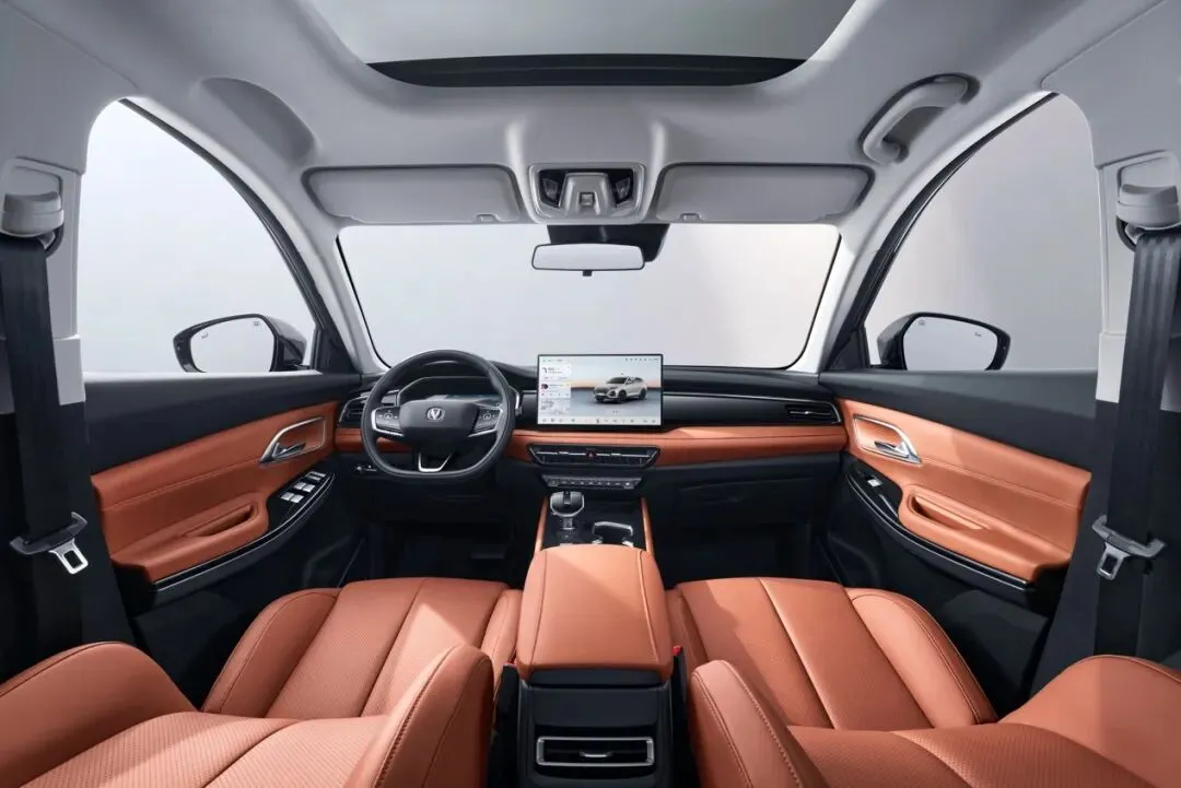 车内采用双色内饰搭配木纹饰板,并配备256色无级炫彩氛围灯,营造出高级质感。15.6英寸中控大屏与10.25英寸液晶仪表组合。配置方面,全系标配的亮点配置有:带延迟照明的自动LED大灯,动态转向灯,外后视镜电动调节/加热,舒云座椅,主驾座椅电动调节,高通骁龙8155高阶智能座舱,智能语音助手,HUAWEI HiCar+无线Carplay,前排侧面双安全气囊,前/后排一体式双侧安全气帘,带防夹的四门车窗一键升降,空调自动除雾,中央扶手箱带冷暖功能等。