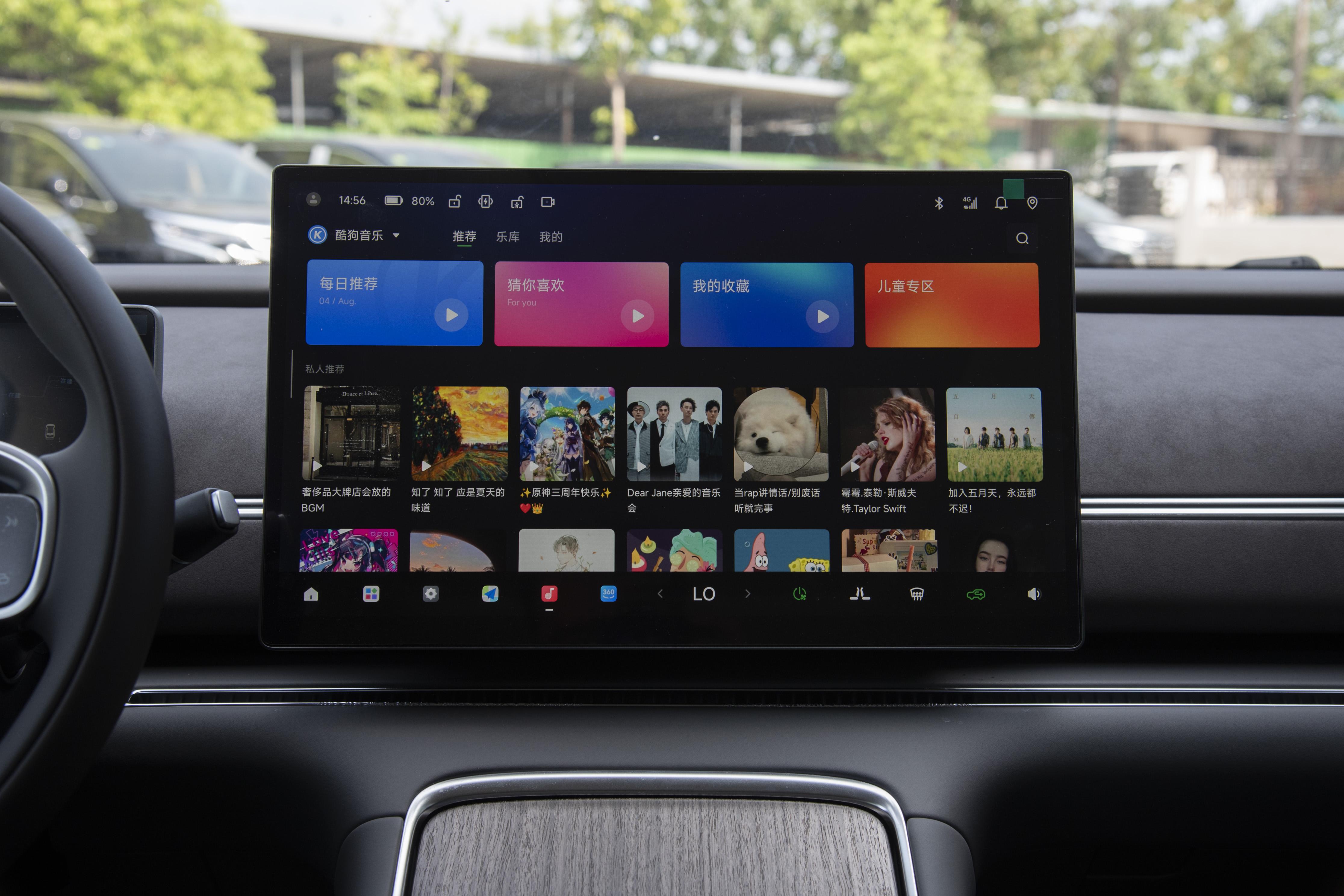 拉开车门,最吸睛的就是中间那块17.3英寸的超大中控屏,分辨率是2.8K,显示效果非常细腻,操作起来跟手感和高端平板电脑差不多。它用的是目前顶流的高通骁龙8295P车机芯片,所以无论你是导航、看视频还是多任务操作,系统都流畅得不像一台15万级别的车。