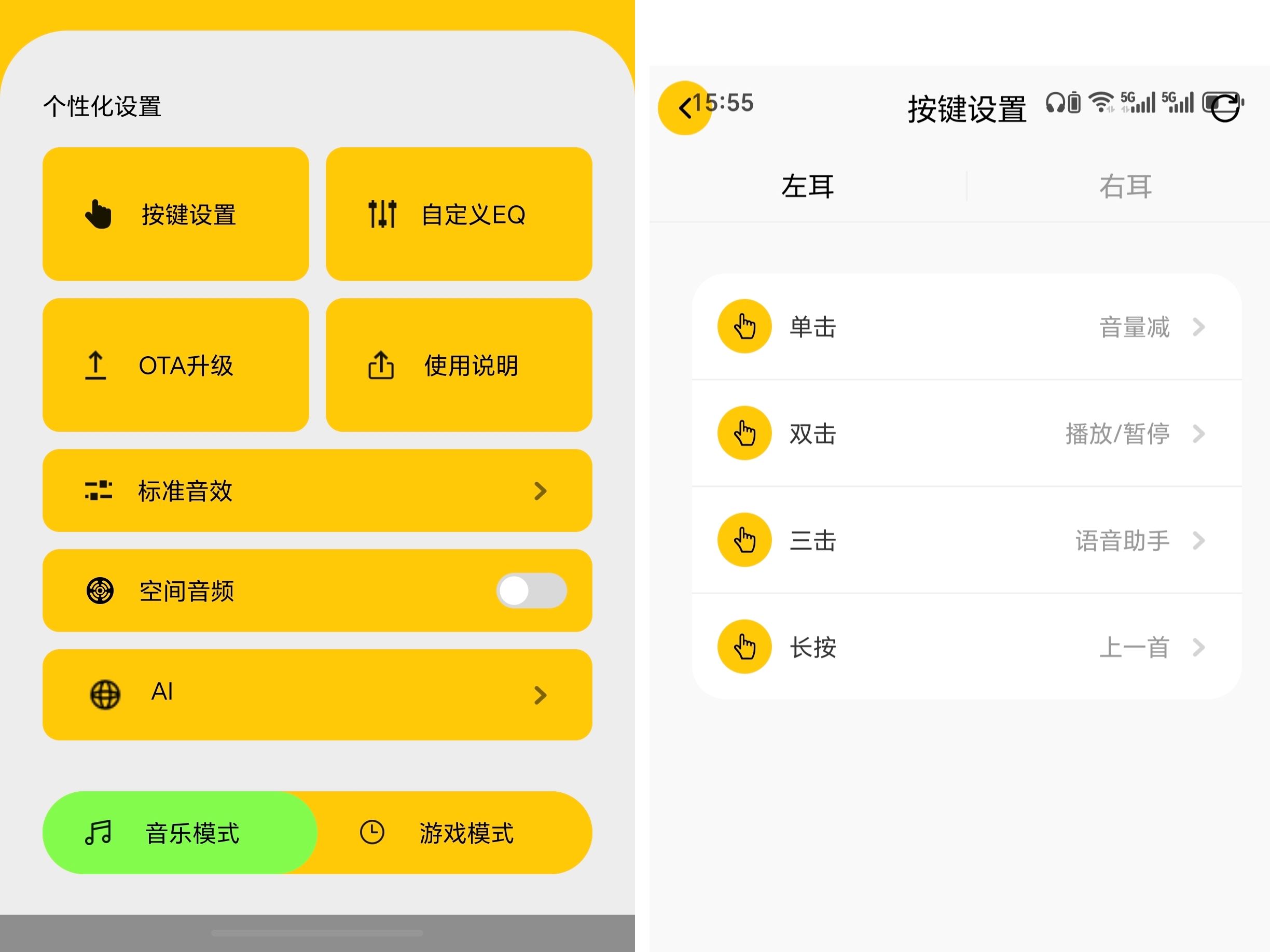 • APP智能操控:除AI功能定制外,APP支持10段EQ调节、空间音频开关、固件升级等。实测中,通过“金耳朵大师调音”调整低频增强后,摇滚乐的鼓点冲击力显著提升。