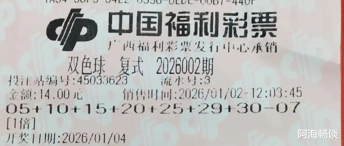 大家好!今天是2006年1月4日,农历十一月十六,星期天。今晚即将迎来第26002期双色球的开奖。上期开奖号码中,前区是:02、06、11、12、13、33。龙头02,凤尾33,跨度达到31。相邻号开出了13,三区比是3:2:1,奇偶比为3:3。后区蓝球开出的是15,这个号码在间隔14期之后再次出现——不知道有多少朋友猜中了呢?目前小编已经收到了不少第26002期的票面,接下来就和大家一起欣赏。在看票之余,也想提醒各位,请理性对待,量力而行。