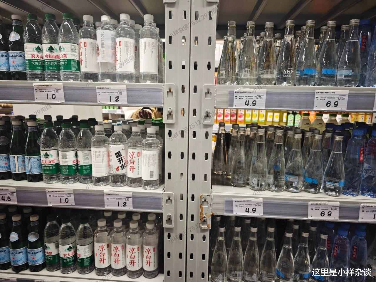 超低的折扣也吸引了不少的买家前来购物。这里不光有服饰,还有日用百货,也是一个不算大的大超市,有鲜肉、有糕点、有零食、水果等。而且价格也是非常便宜的,看下面的饮用水价格,绝对比街边的超市要便宜,真正的折扣价。