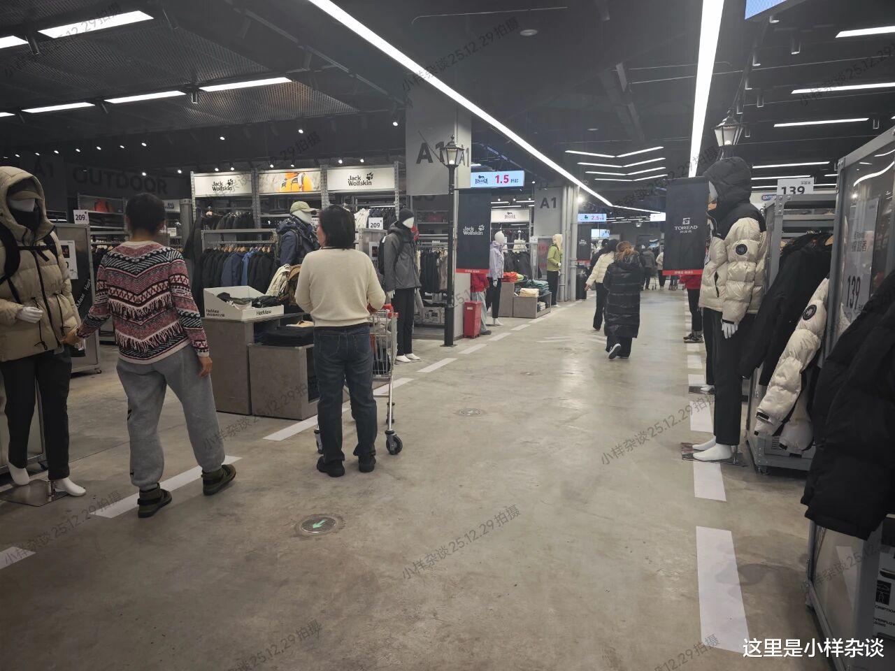 这里按照男士、女士、儿童、鞋等分成了多个区域,在每一排的货架上都可以看到大大的折扣,有的甚至低至不到2折。