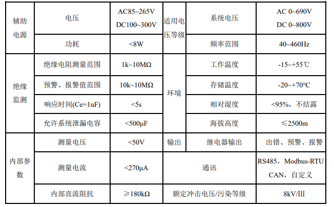 (1)实时监测IT系统的对地绝缘电阻,电阻越启动故障预警或报警功能;