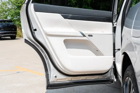 (二)贴心细节设计细节之处往往最能体现一款车的用心程度,eπ008 五座版在这方面做得相当出色。它的 50W 无线充电面板采用了仿麂皮材质 ,这一小小的改变却带来了大大的便利。以往在使用无线充电时,手机常常会因为车辆行驶中的颠簸而滑落,导致充电中断,而现在有了仿麂皮材质增加的摩擦力,手机可以稳稳地放置在充电面板上,即使经过减速带等颠簸路段,也不用担心手机会滑动,充电变得更加稳定、高效。主驾和副驾都配备了 LED 柔光美妆镜 ,这对于爱美的女士来说无疑是个福音。其光线柔和且不刺眼,无论是清晨匆忙出门时的简单梳妆,还是途中需要补妆,都能提供恰到好处的光线,让妆容更加自然、精致,满足了女性用户随时随地保持美丽的需求。车内门把手采用了按键式设计 ,轻轻一按就能打开车门,操作简单便捷,即使是力气较小的老人和孩子也能轻松驾驭。这种设计不仅提升了使用的便利性,还为车内增添了一份科技感,让每一次开门都变得更加优雅。(三)静谧空间与舒适温控一家人出行,车内的静谧性至关重要,它直接影响着乘车的舒适度和心情。eπ008 五座版深知这一点,因此在隔音方面下足了功夫。现在购买还赠送静音舒享包,其中包含 21 英寸的超静音轮胎 ,这种轮胎采用了特殊的材质和设计,能够有效降低轮胎与地面摩擦产生的噪音;前风挡和四个车门均使用了双层夹胶隔音玻璃 ,进一步阻隔了外界的噪音传入车内;再加上车身多达 30 多处的隔震设计 ,全方位地打造出了一个静谧的空间。实际体验中,当车辆以 120km/h 的速度行驶时,车内噪音仅在 60 分贝以下 ,安静得如同置身于图书馆,家人之间可以轻松地交谈,无需提高音量,孩子也能在安静的环境中安心休息或玩耍。