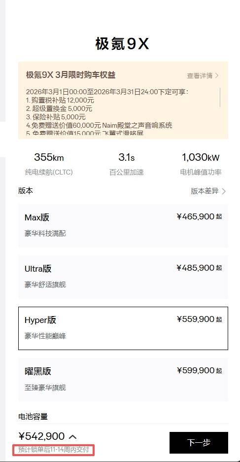 上周刚去展厅才看完极氪9X,今天就看到推送说交付提速了——关键核心零部件产能翻倍投产,现在等车周期直接缩到11-14周,算下来最快两个多月就能开上新车。这速度配上这体量,确实香。