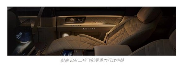 ES9 的飞航行政座椅采用蔚来自研高端座椅平台。二排飞航零重力行政座椅,长达 2.3米的连贯椅面配合覆盖全身 42 点全维深层按摩系统,包括行业首创 20 点机械足底按摩,带来极致身心放松。座舱全球首发阵列式 LC 智能隐私调光车窗,拥有行业最快变色速度,原创的智能行政中岛配合顶级双 16 英寸专属行政屏、高清视频会议系统及专属磁吸茶台,让商务体验高效而得体。
