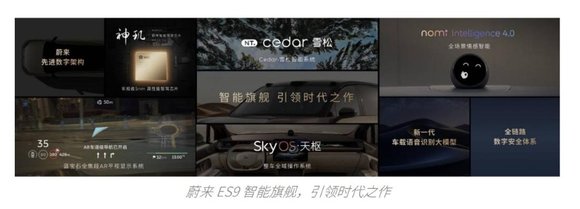 ES9 是「有芯有魂领先一代」的智能旗舰,搭载行业最强智能系统「Cedar雪松」,包含全球首颗 5nm 车规级旗舰智驾芯片「神玑 NX9031」,并融合领先一代的 AI 原生数字架构和面向 AI 的全域操作系统「SkyOS·天枢」,带来全维度智能革新。依托全新 NOMIIntelligence 4.0架构,NOMI 全面进化。ES9 还构建全链路安全防护体系,让智能体验可靠、
