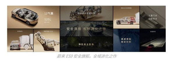 ES9 拥有超越全球五星安全标准的设计,标配 12 个安全气囊,融合主被动一体智慧安全技术,实现全向智能碰撞抵御,并构建七重旗舰级安全冗余,实现从物理防护到智能预警的全方位安全旗舰进阶。