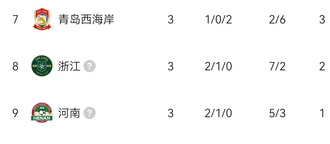 河南队本赛季中超联赛3场比赛,2胜1平0负,打进5球失3球,积1分(足协罚分已清零),目前中超联赛积分榜排第9名。