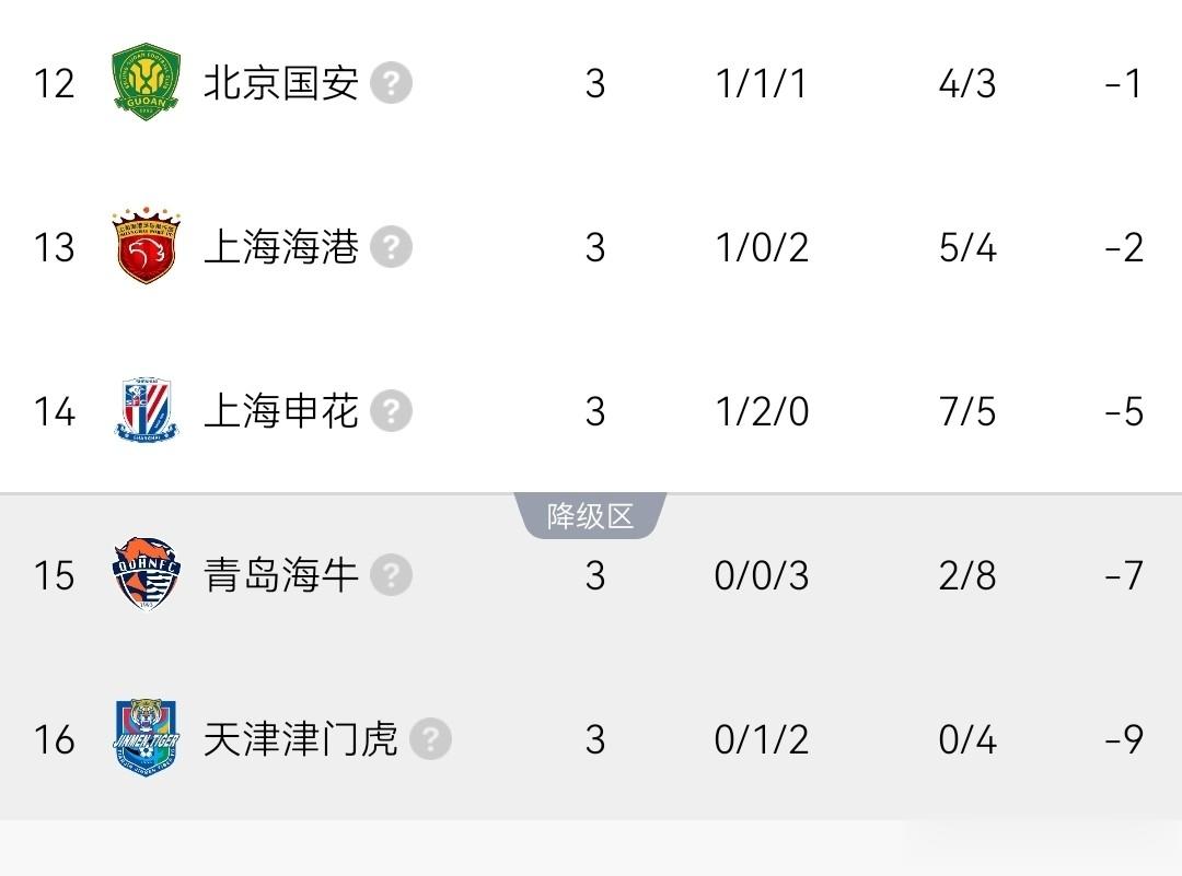 青岛海牛队本赛季中超3场比赛,0胜0平3负,打进2球失8球,积负7分(历史原因足协罚分),目前中超联赛积分榜排第15名。